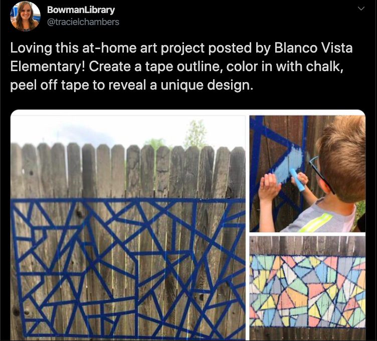 This Art of Education post by Abby Schukei outlines 27 activities for at home. There are resources for everything from painting with coffee to found-object lessons to sketching and drawing prompts.